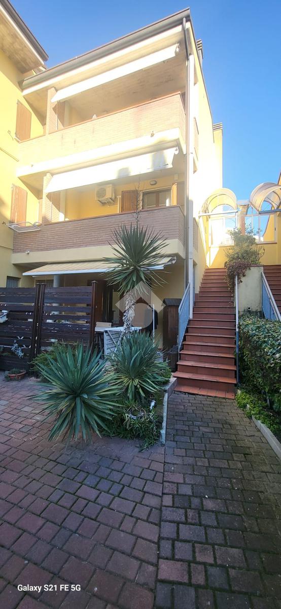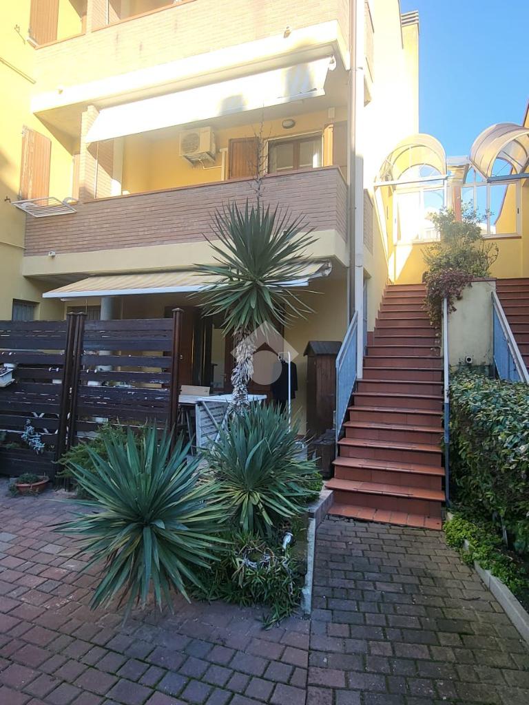 IGEA MARINA Nella zona del porto canale, villetta a schiera sviluppata su piu' piani con ingresso indipendente e corte privata. Al primo piano: ampio soggiorno con cucina e 2 terrazzi loggiati; al secondo piano camera matrimoniale, cameretta/cabina armadio, balcone con vista mare; al terzo ed ultimo piano camera mansardata con terrazza con magnifica vista mare.